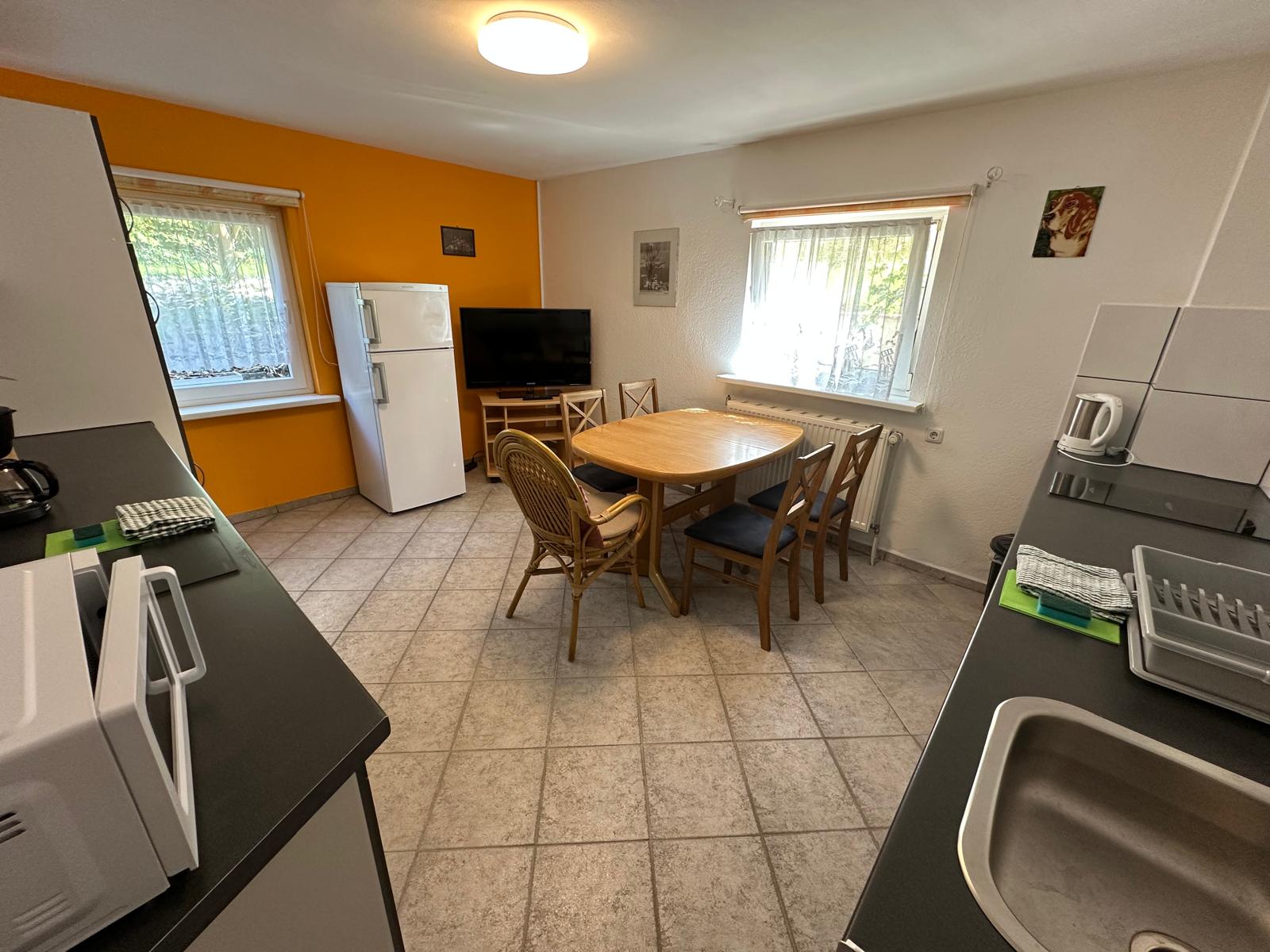- voll ausgestattete Küche mit Essbereich und Waschmaschine